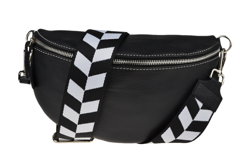 Elegantní, ale zároveň velmi praktická černá ledvinka malých rozměrů vyrobena z pravé kůže.