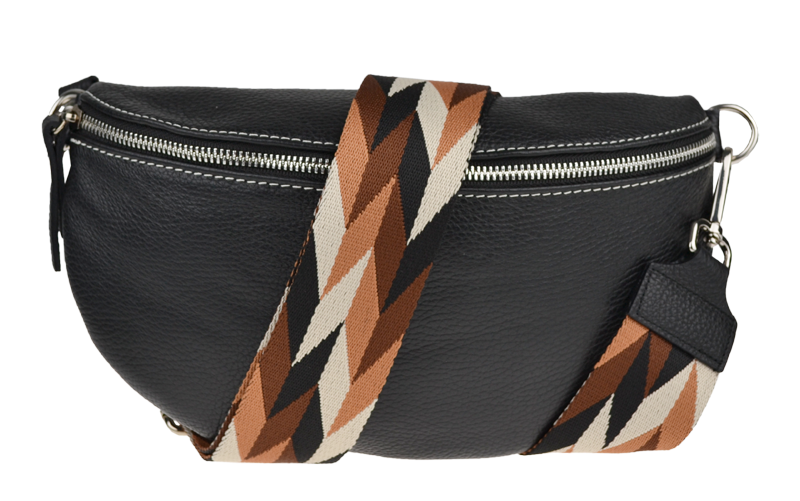 Elegantní, ale zároveň velmi praktická černá ledvinka malých rozměrů vyrobena z pravé kůže.