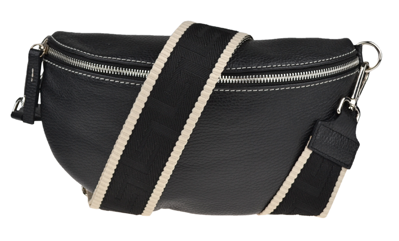 Elegantní, ale zároveň velmi praktická černá ledvinka malých rozměrů vyrobena z pravé kůže.