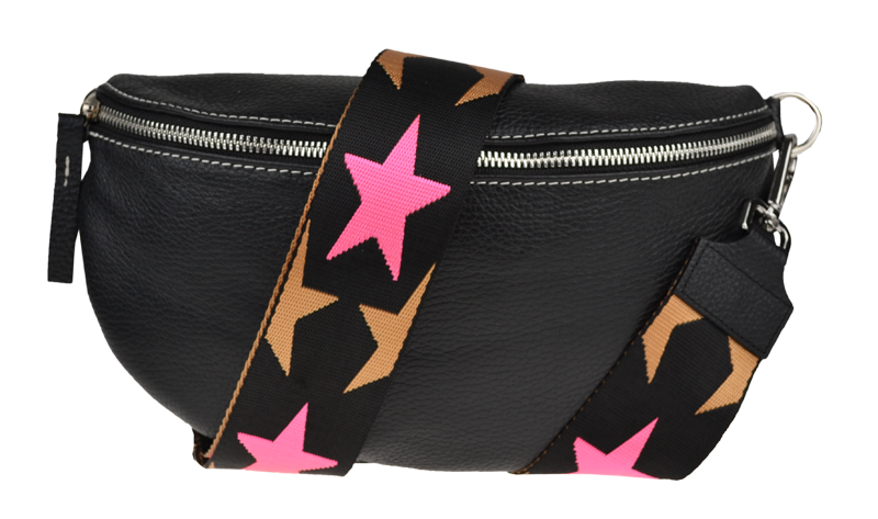 Elegantní, ale zároveň velmi praktická černá ledvinka malých rozměrů vyrobena z pravé kůže.