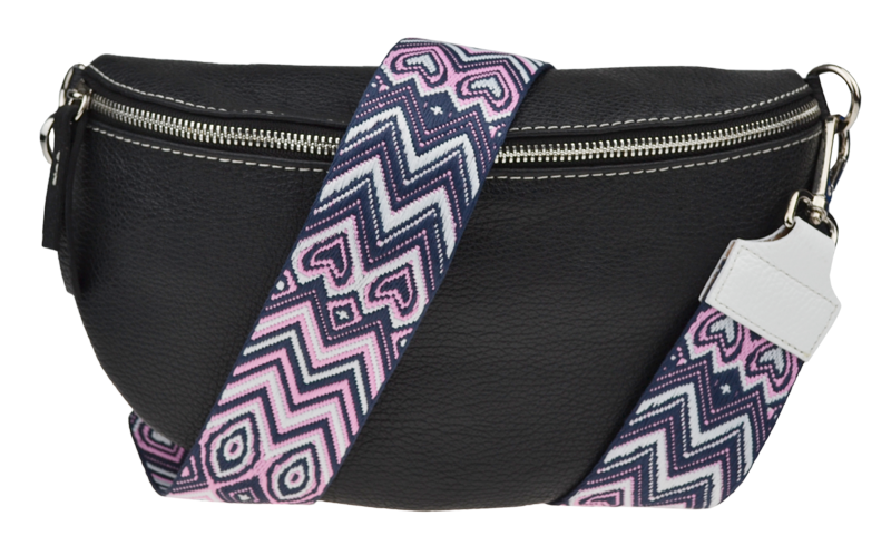 Elegantní, ale zároveň velmi praktická černá ledvinka malých rozměrů vyrobena z pravé kůže.