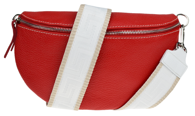 Elegantní, ale zároveň velmi praktická červená ledvinka malých rozměrů vyrobena z pravé kůže.