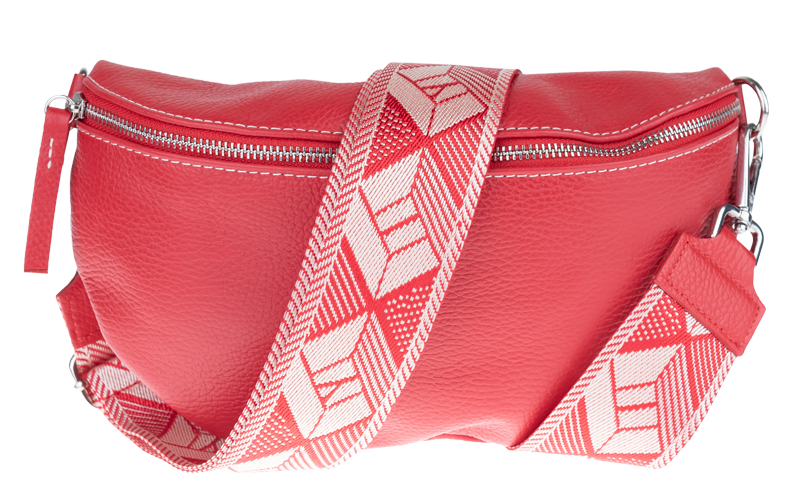 Elegantní, ale zároveň velmi praktická červená ledvinka malých rozměrů vyrobena z pravé kůže.
