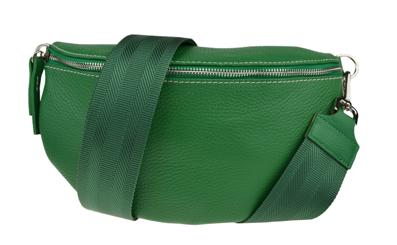Elegantní, ale zároveň velmi praktická zelená ledvinka malých rozměrů vyrobena z pravé kůže.