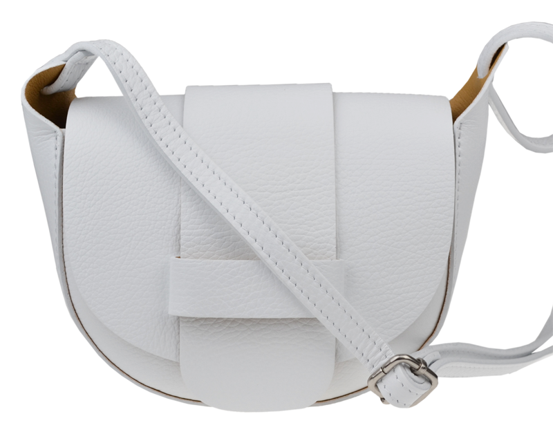 Bílá kabelka nositelná přes rameno či cross-body (křížem). Kabelka má  nastavitelný popruh s maximální délkou cca 130 cm.