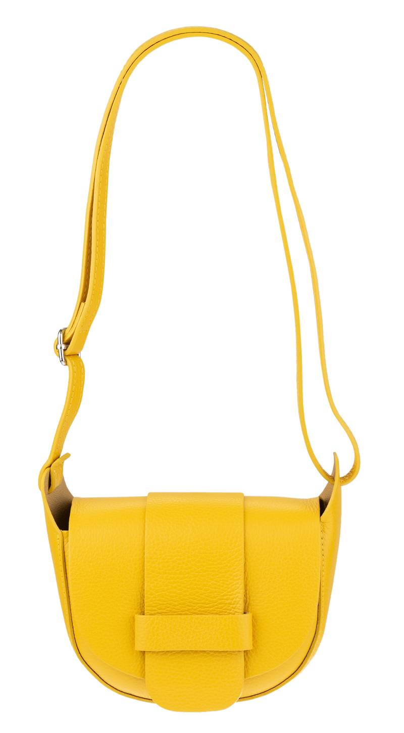 Žlutá kabelka nositelná přes rameno či cross-body (křížem). Kabelka má  nastavitelný popruh s maximální délkou cca 130 cm.