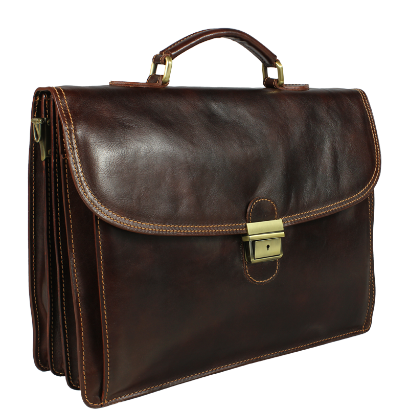 Velká pánská kožená aktovka v hnědé barvě. Aktovku je možné nosit pomocí popruhu přes rameno. Vnitřek aktovky disponuje čtyřmi přihrádkami a koženým doplňkem pro uchycení psacích potřeb. Přezka aktovky je uzamykatelná. Délka přídavného popruhu je max 140 cm.