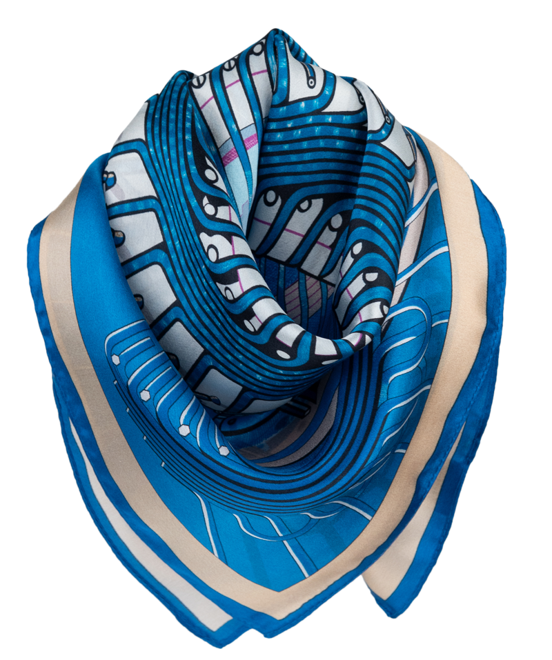 Malý elegantní šátek ze 100% hedvábí s jedinečným vzorem.