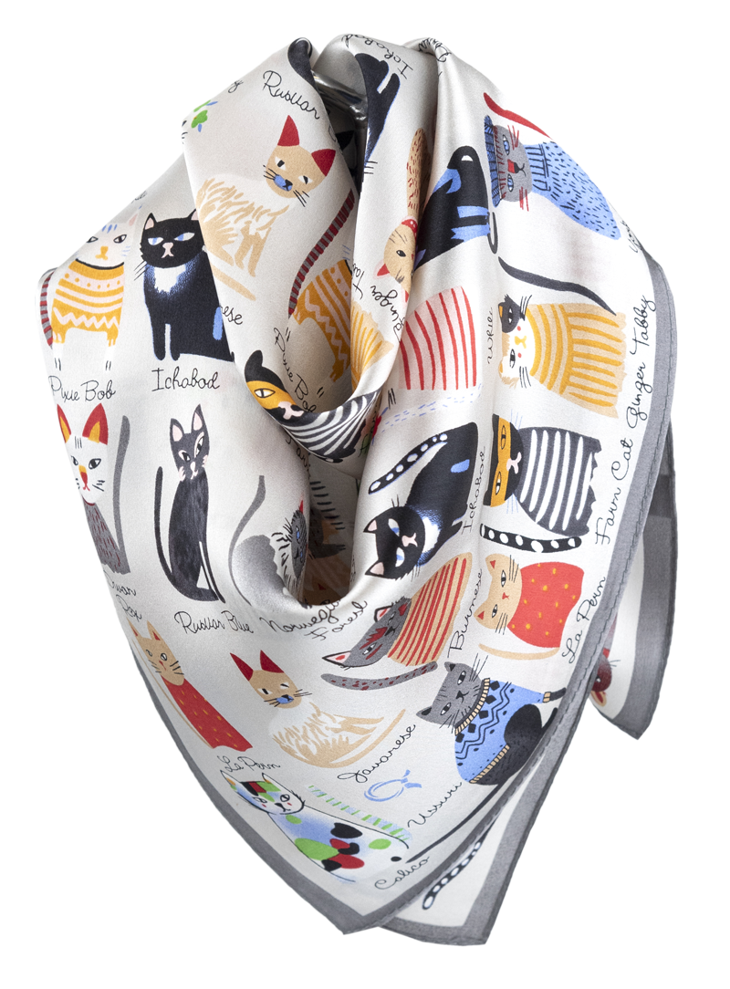 Malý elegantní šátek ze 100% hedvábí s jedinečným vzorem.