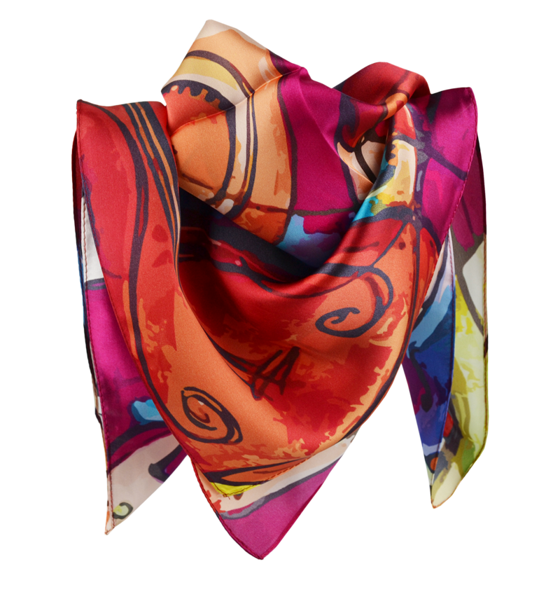 Malý elegantní šátek ze 100% hedvábí s jedinečným vzorem.