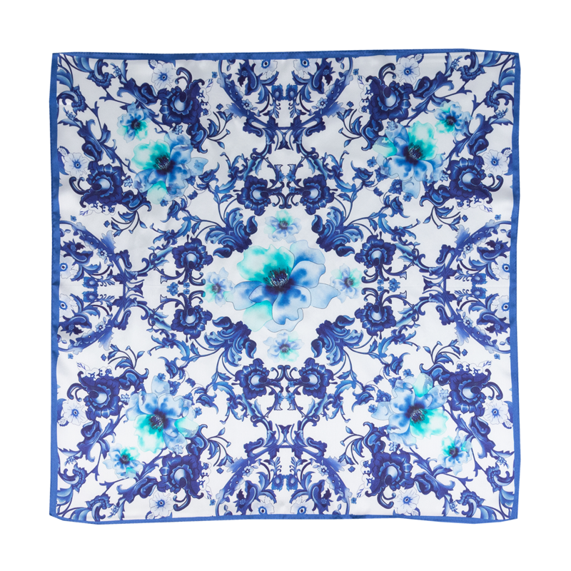 Malý elegantní šátek ze 100% hedvábí s jedinečným vzorem.