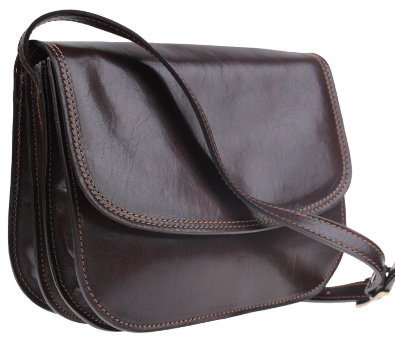 Šikovná kabelka se zajímavým tvarem. Kabelka je vyrobená z pravé kůže, která velice dobře drží svůj tvar. Je vhodná na nošení přes rameno nebo cross-body (křížem).