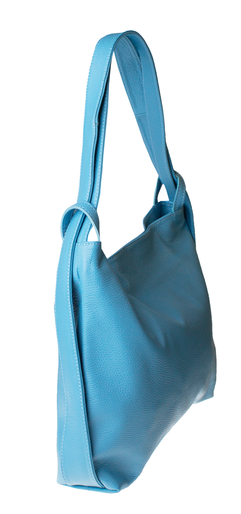 Krásná kožená kabelka s jednoduchým designem v modré barvě. Tato kožená kabelka je uzavíratelná pomocí zipu. Disponuje pohodlnými uchy dostatečné délky, takže jí lze nosit  pohodlně přes rameno nebo jako batůžek. Pohodlně se do ní vejdou dokumenty formátu A4.