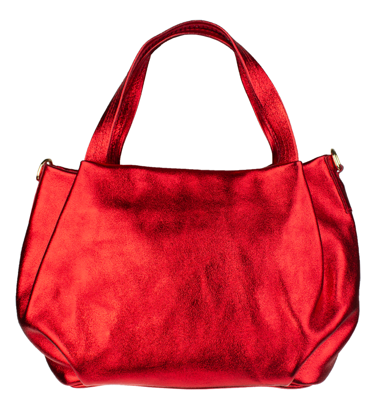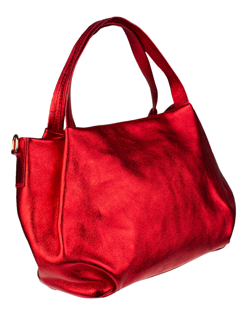 Elegantní a praktická metalicky – červená kabelka nositelná cross-body (křížem) nebo v ruce. Tato kožená kabelka je uzavíratelná na zip. Uvnitř kabelky najdeme na boční stěně  kapsu na zip a přihrádky pro mobil či klíče. Hloubka jejího dna je 13 cm. Kabelka má navíc nastavitelný popruh s maximální délkou cca 120 cm.