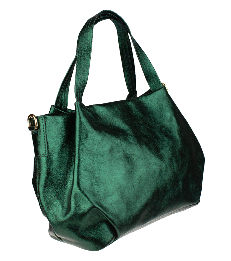 Elegantní a praktická metalicky – zelená kabelka nositelná cross-body (křížem) nebo v ruce. Tato kožená kabelka je uzavíratelná na zip. Uvnitř kabelky najdeme na boční stěně  kapsu na zip a přihrádky pro mobil či klíče. Hloubka jejího dna je 13 cm. Kabelka má navíc nastavitelný popruh s maximální délkou cca 120 cm.