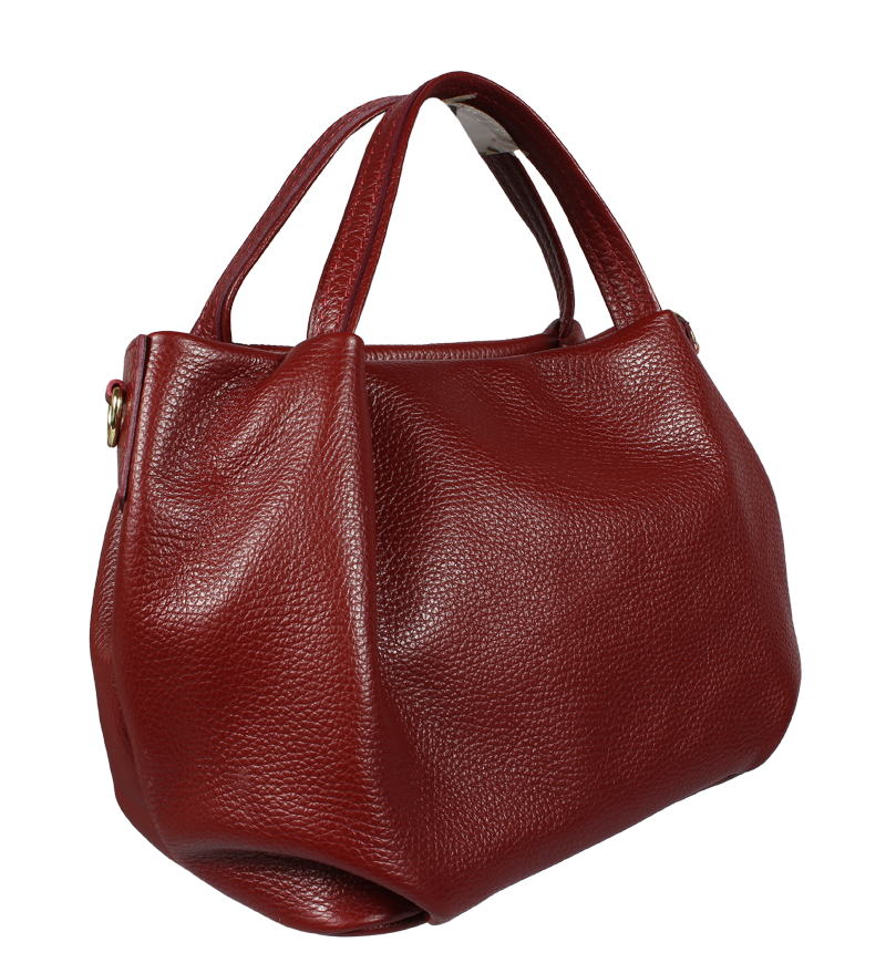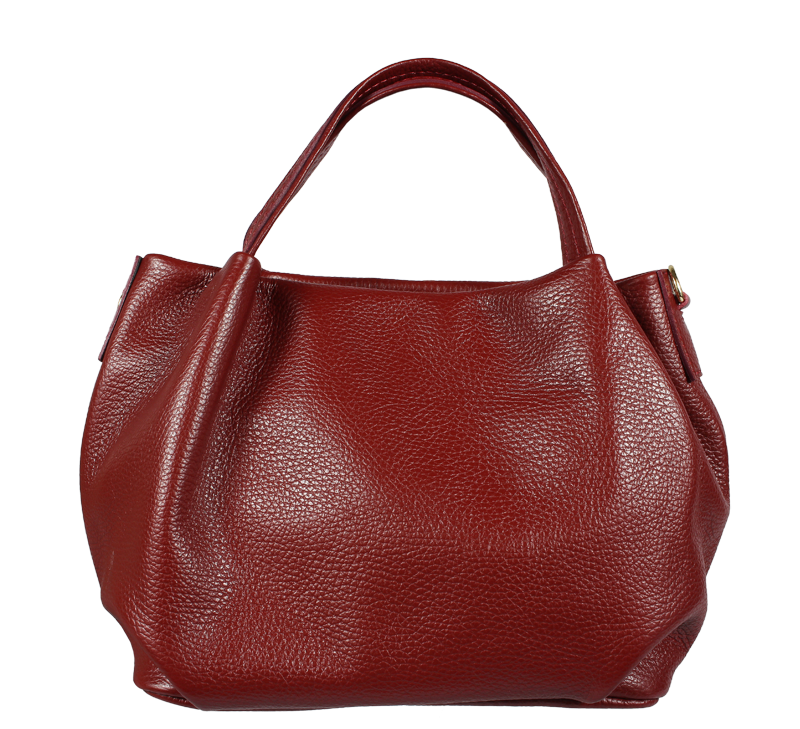 Elegantní a praktická tmavě červená kabelka nositelná cross-body (křížem) nebo v ruce. Tato kožená kabelka je uzavíratelná na zip. Uvnitř kabelky najdeme na boční stěně  kapsu na zip a přihrádky pro mobil či klíče. Hloubka jejího dna je 13 cm. Kabelka má navíc nastavitelný popruh s maximální délkou cca 120 cm.