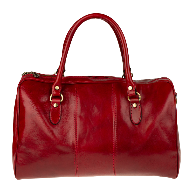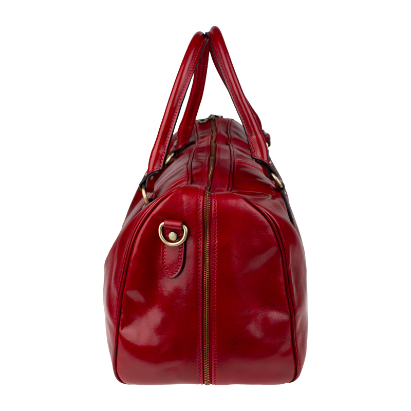 Luxusní kožená cestovní taška v červené barvě. Taška je vyrobena z hladké kvalitní Italské kůže. Součástí tašky je přídavný popruh o délce cca 107 cm. Taška se uzavírá kovovým zipem. Cestujte stylově s koženou taškou!