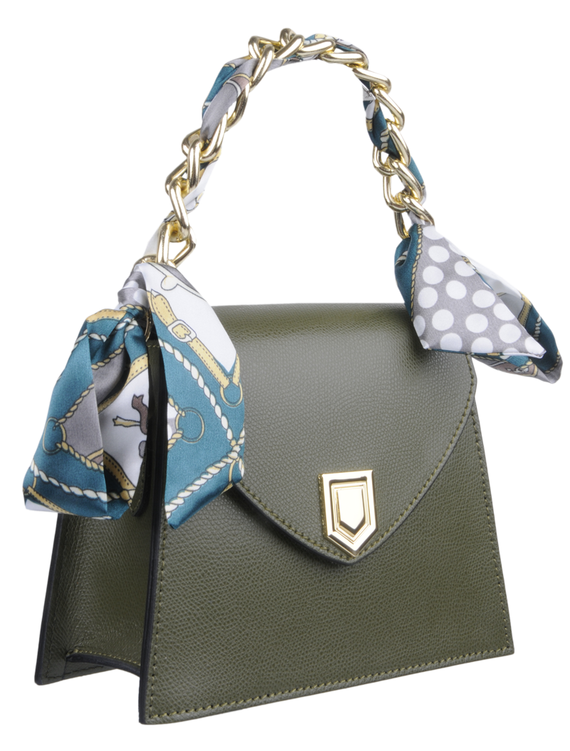 Malá šikovná kabelka se zajímavým tvarem. Kabelka je vyrobená z pravé kůže, která velice dobře drží svůj tvar. Je vhodná na nošení přes rameno nebo cross-body (křížem).